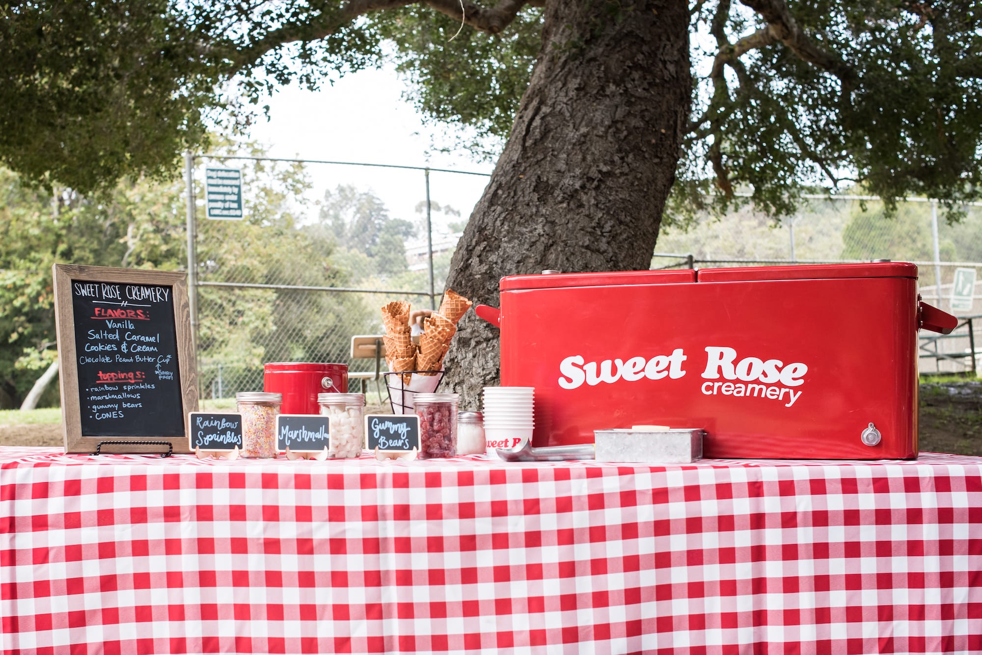 Host an Ice Cream Sundae Party! We’ll take care of everything by bringing our vintage red cooler set-up or rolling cart, and scooping at the location of your choice.